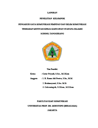 JUDUL 20232 | LAPORAN PENELITIAN KELOMPOK PENGARUH GAYA KOMUNIKASI PIMPINAN DAN IKLIM KOMUNIKASI TERHADAP MOTIVASI KERJA KARYAWAN SYAFANA ISLAMIC SCHOOL TANGGERANG