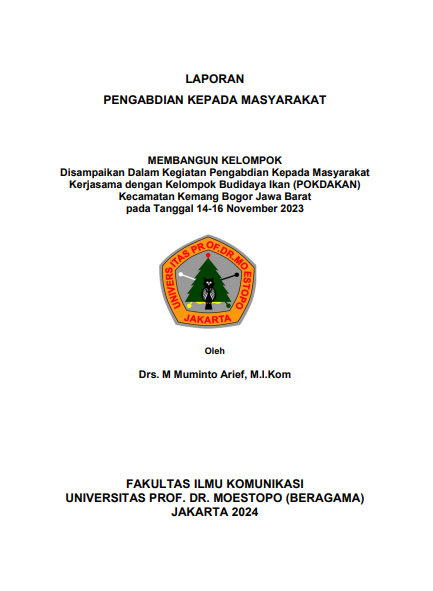 | JUDUL | 20231 : PKM - MEMBANGUN KELOMPOK Disampaikan Dalam Kegiatan Pengabdian Kepada Masyarakat Kerjasama dengan Kelompok Budidaya Ikan (POKDAKAN) Kecamatan Kemang Bogor Jawa Barat pada Tanggal 14-16 November 2023 |